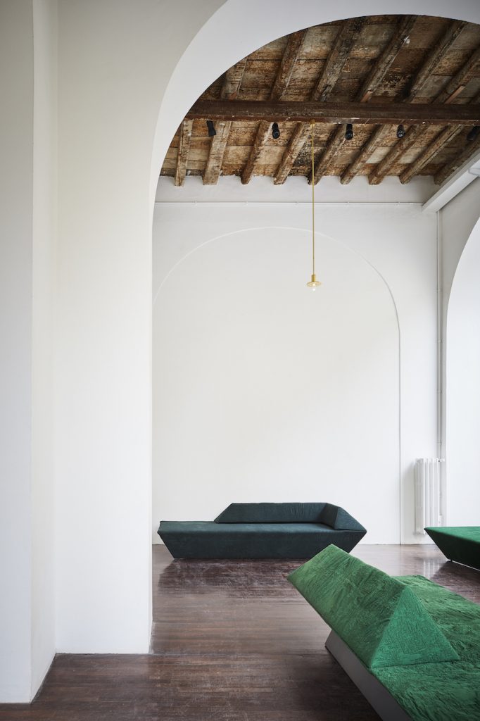 2022年発表のピーター・ズントーのシェーズ・ロングは、薄く細身のフォルム。