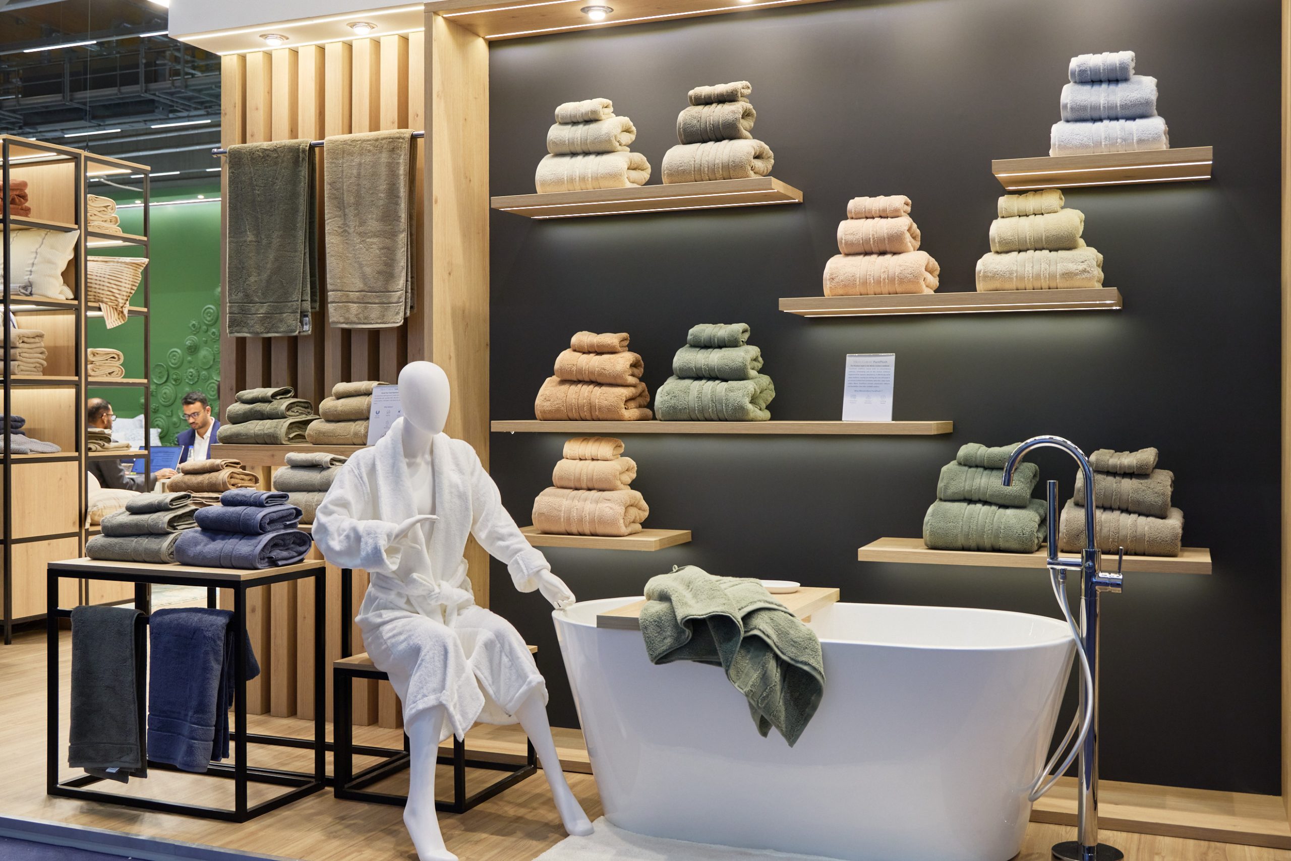 従来より遠くとするタオルやホームテキスタイルも健在。質の良いタオルは日本でも根強い需要を持つ商材の一つ。