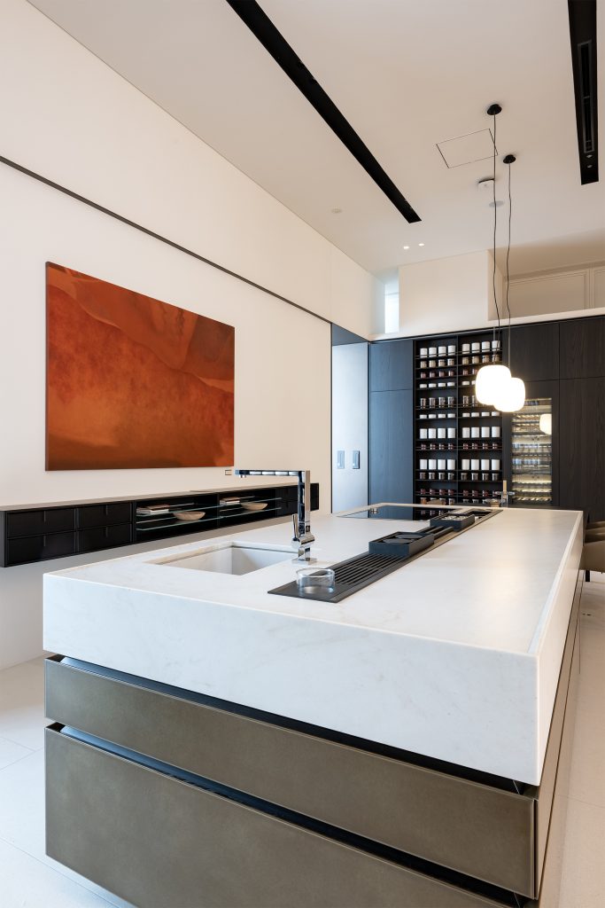 大きなキッチン「アルテックスプロ」はポリフォームのメインモデルです。ビッグアイランドやウォールキッチンを中心に、オリジナルドアで仕切ったルームスタイルのキッチンもつくれる。インテリアアーキテクチャーを成立させています。