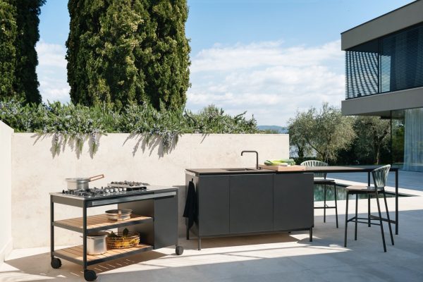 ロダは日本ではアウトドア家具で知られるブランドですが、ミラノではおそろいで使える屋外向けキッチンも発表していました。…