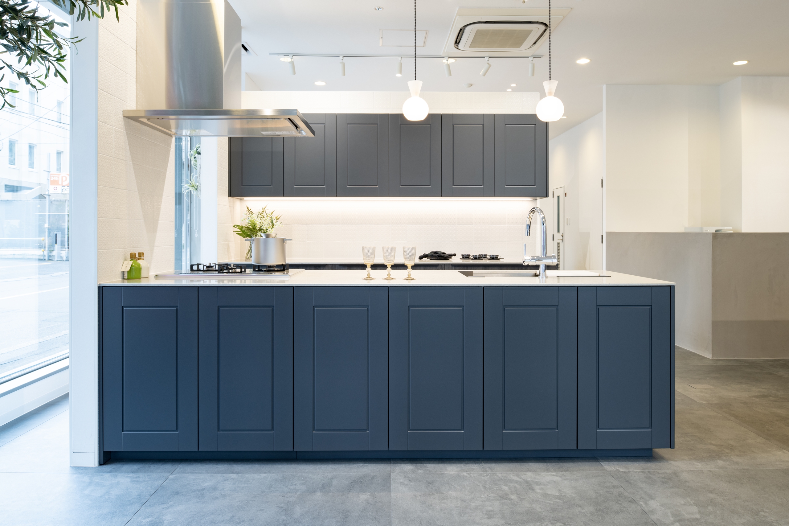 シンプルなシルエットがキッチンハウスが若い世代に支持される理由ですが、ここでは扉のバリエーションも豊富。