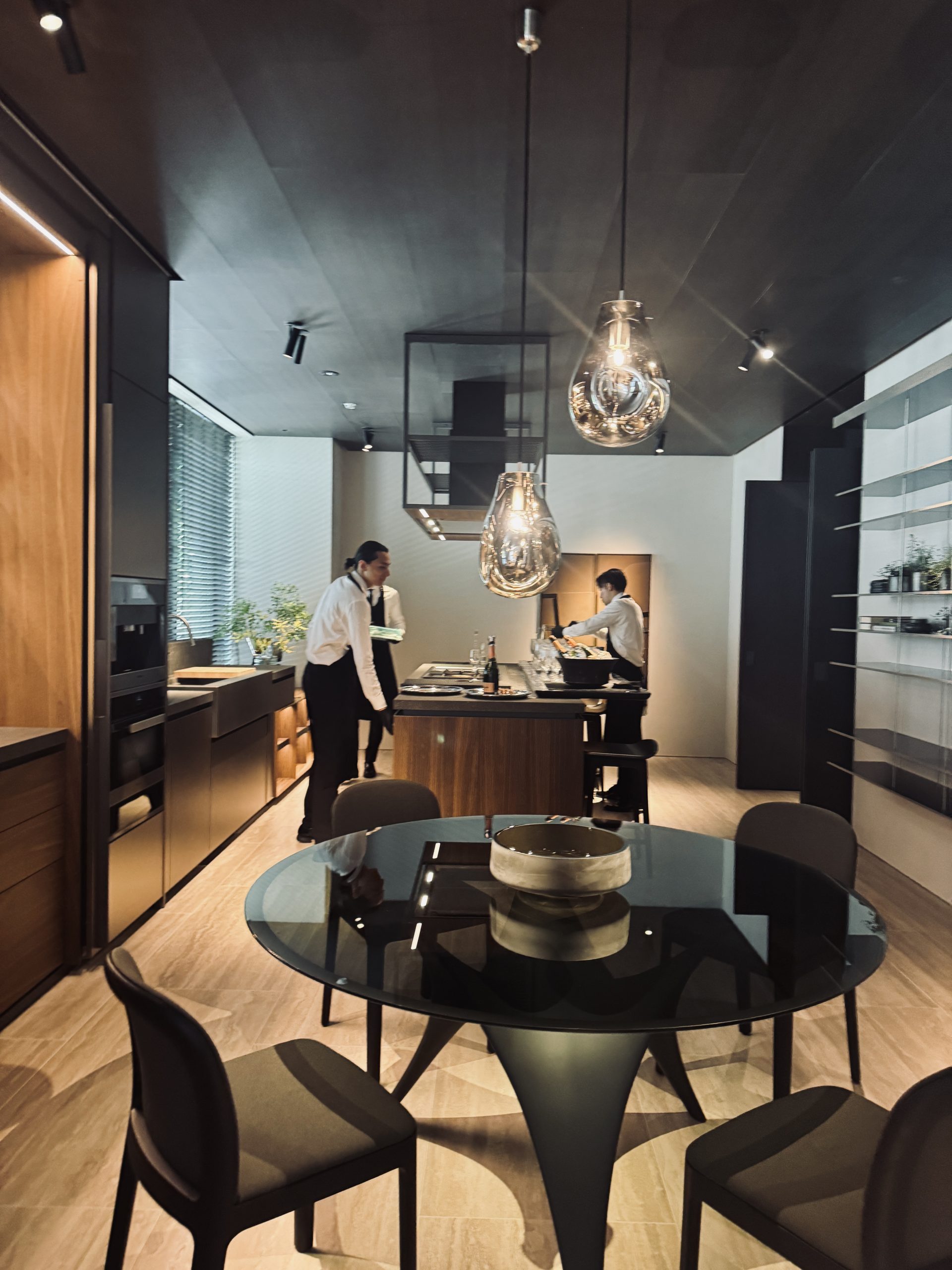 モルテーニで最も人気のあるラインナップの一つがキッチン。もちろんインテリアキッチンとして、ダイニングや壁面収納としてデザインされ、写真のように人が集まる場所となるオープンキッチンです。