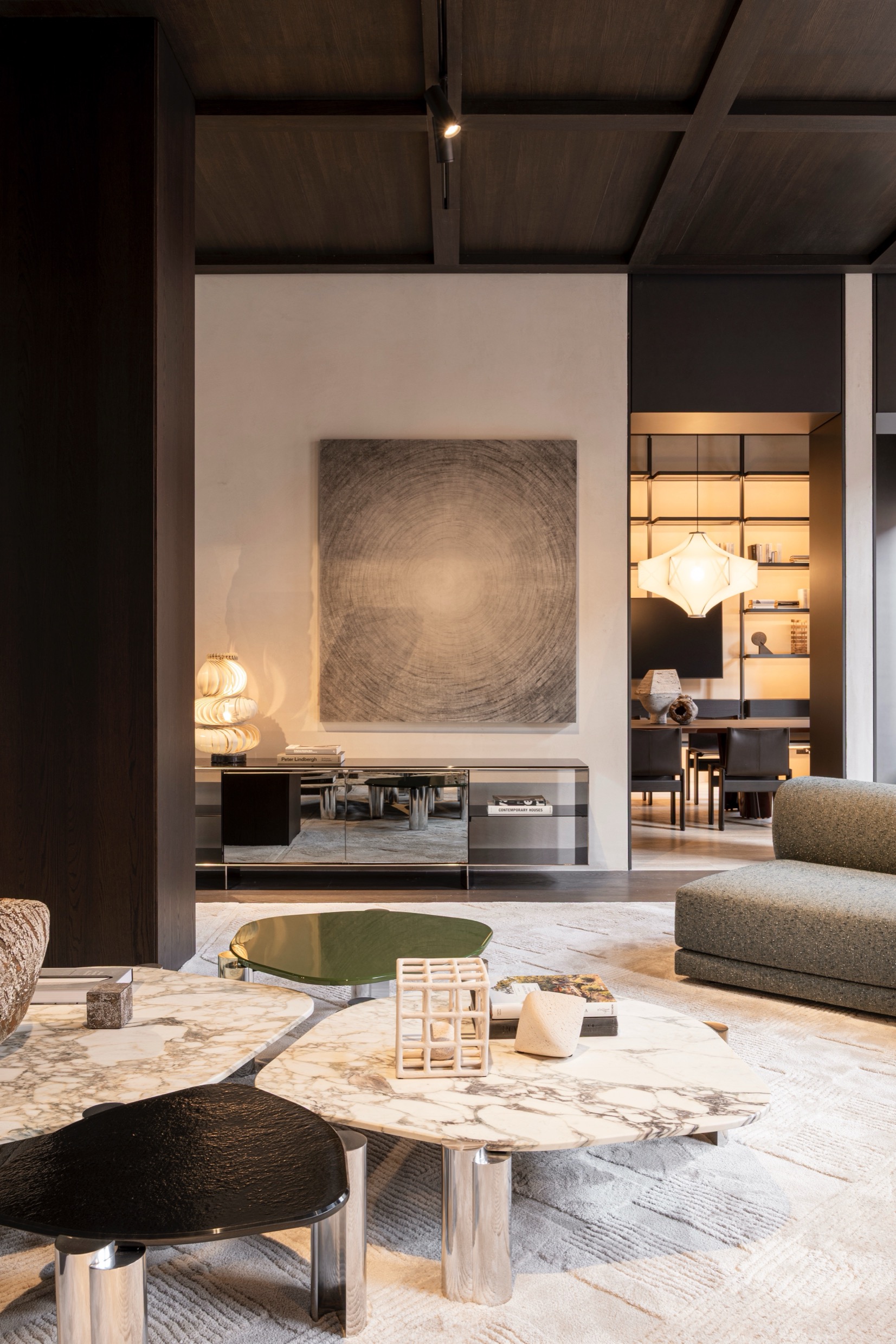ページをめくるように展開される、間取りのバリエーションと豊かに広がるリビング。先にご紹介した「パラッツォ・モルテーニ東京」でも体験できるこのような考え方は、ここミラノが原点と言えます。