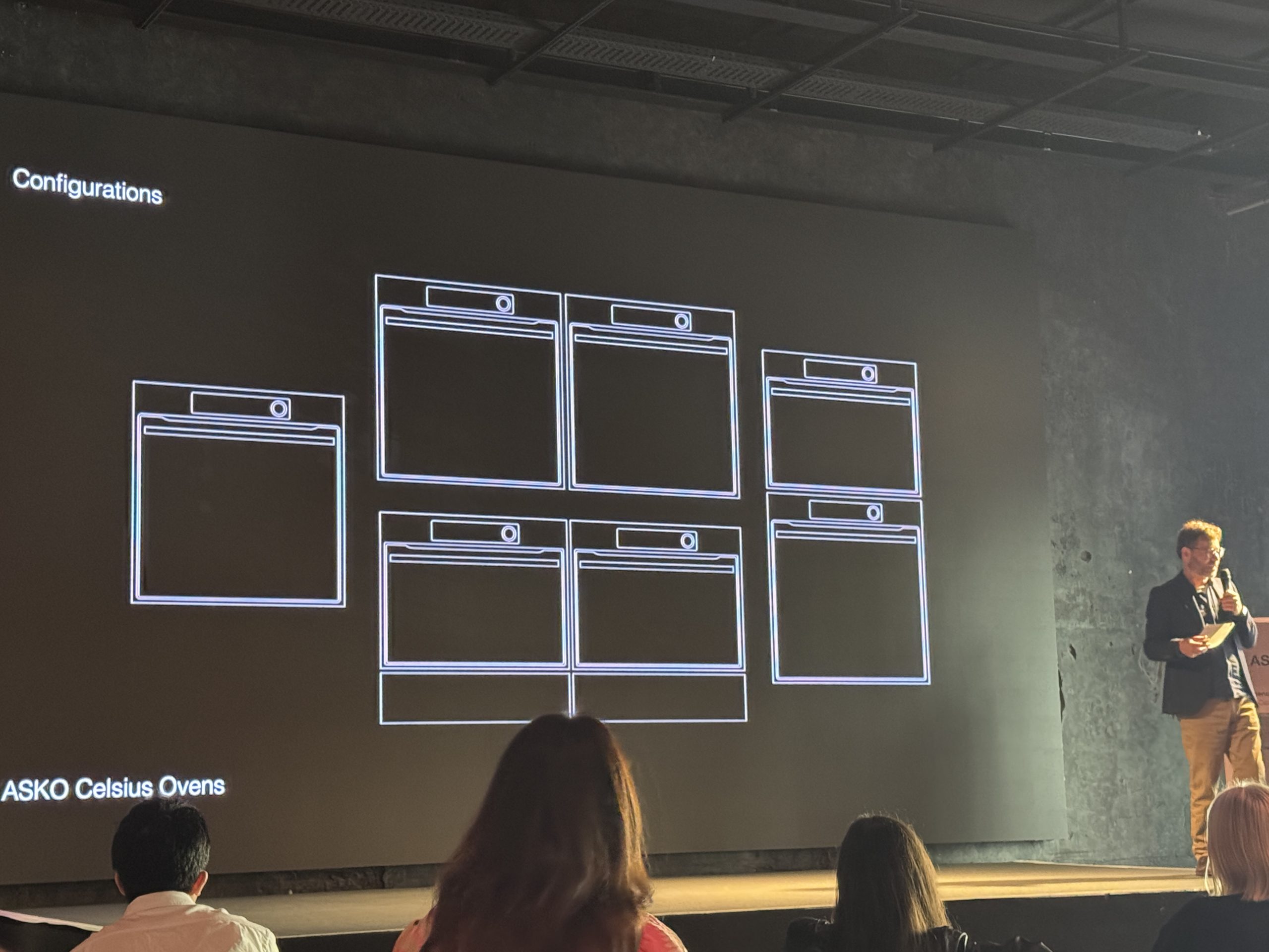 プレゼンテーションでは各分野の社内デザイナーが自ら説明を行いました。ビルトインオーブンやIHクッキングヒーターは厳密な温度管理による「セルシアスクッキング」がこの数年、アスコの大きなテーマとなっています。