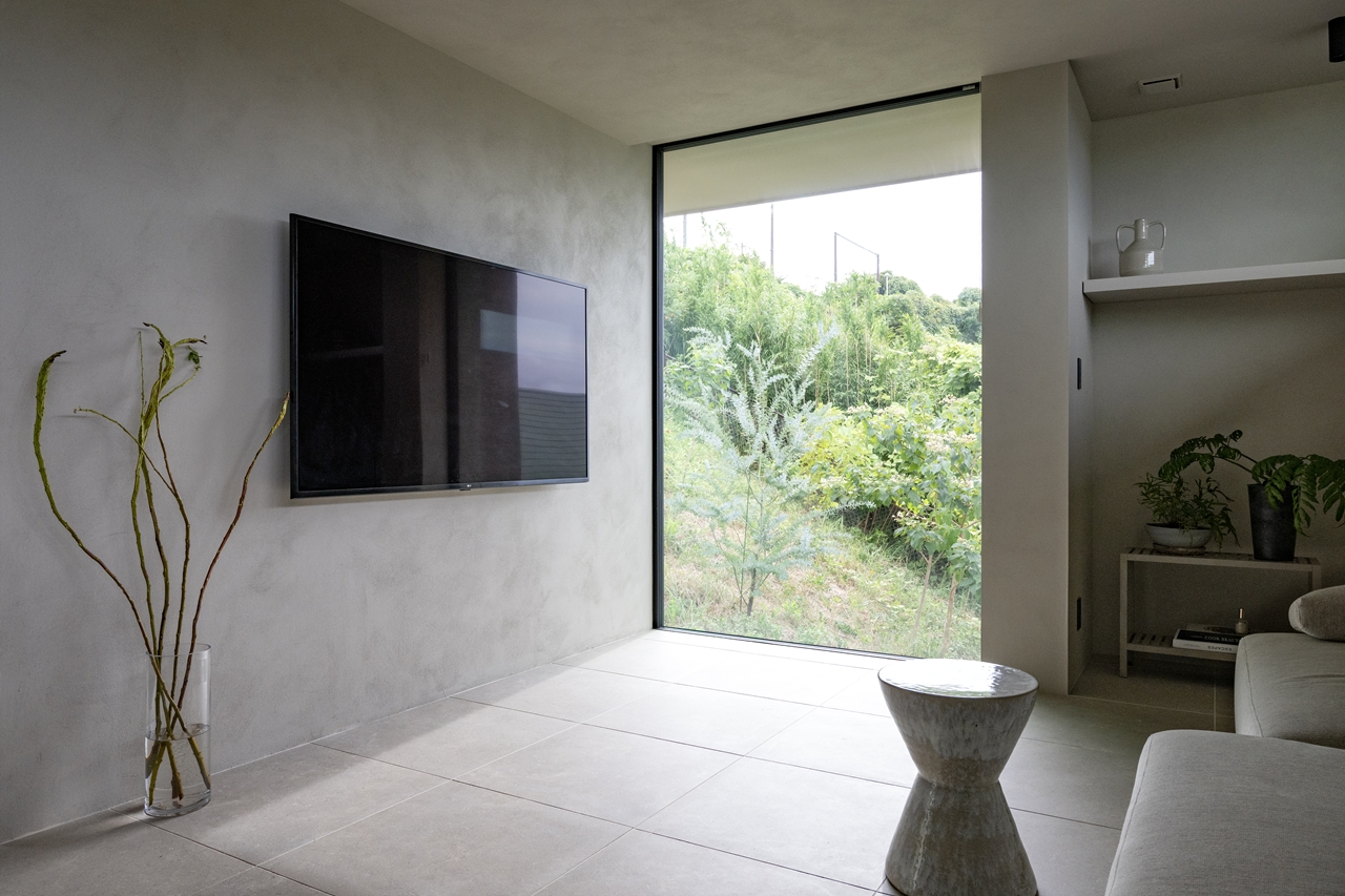 土地は斜面地で、見る方向によって風景が大きく変わります。見せたくない部分と、開きたい景色を意識しながら、かつひろさんは視線が抜ける位置関係を丁寧に設計しました。
