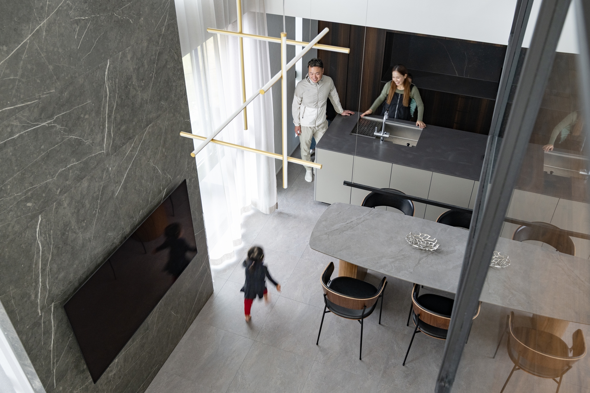 そして両親が家事をしていると、自然と子どもたちはキッチンに集まり、料理を手伝ったり、横で遊んだりします。オープンキッチンが、家族の距離を縮めているのです。