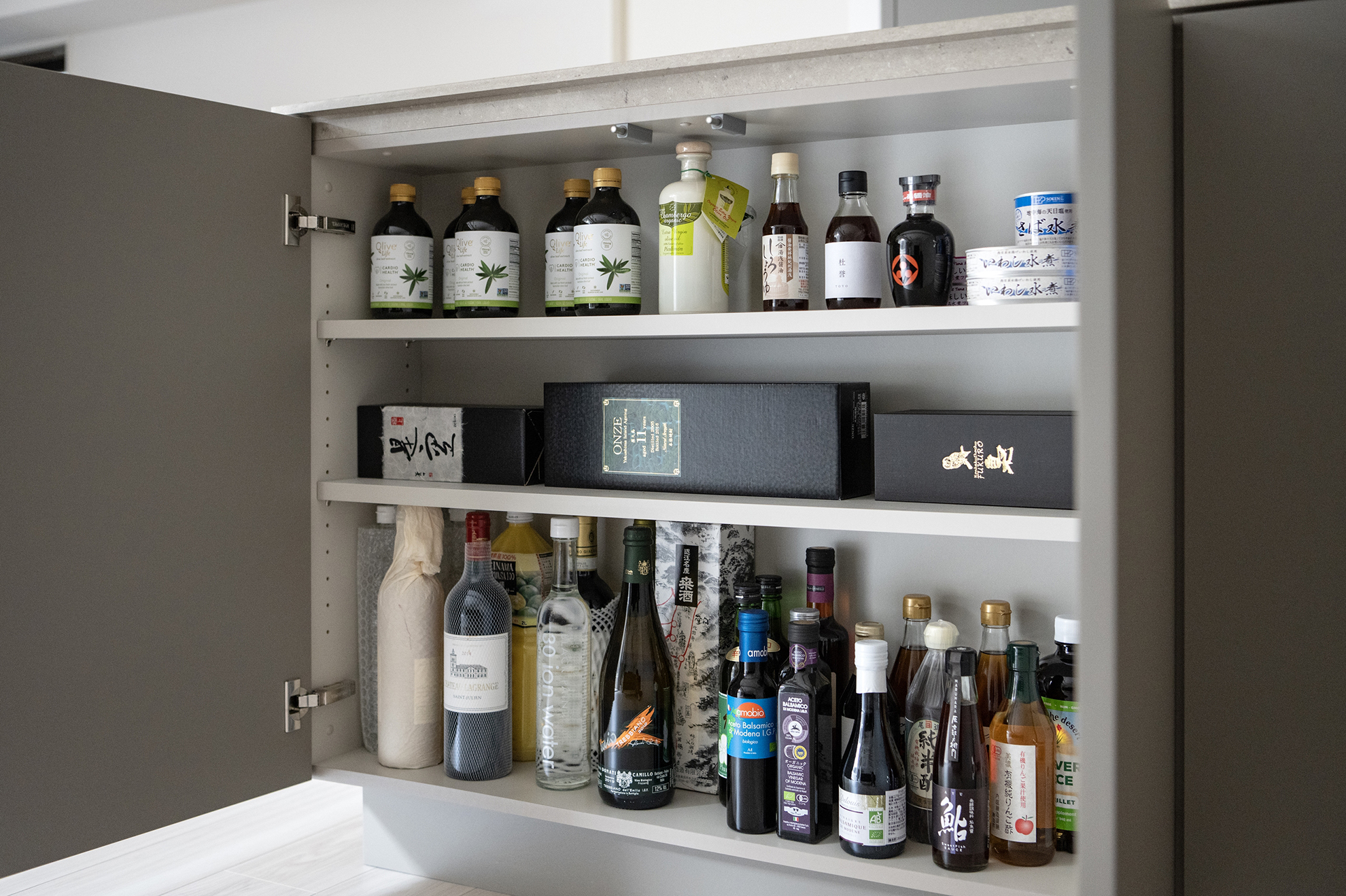ということで、前置きがなくなったけれど、こういったビバレッジアイテムが家庭のキッチンに収まり切らなくなっている。キッチンの一般的なトールキャビネット(キッチンの後ろに造作する食器や家電の収納棚)のほかに、幅900mmほどのキャビネットを設けて、電気ケトルや炭酸水メーカー、ジューサー、コーヒー道具などを入れる飲み物専用の収納やコーナーを持つキッチンを独立して備えることがこの数年とても増えている。シンクやが備えられている場合も多い。