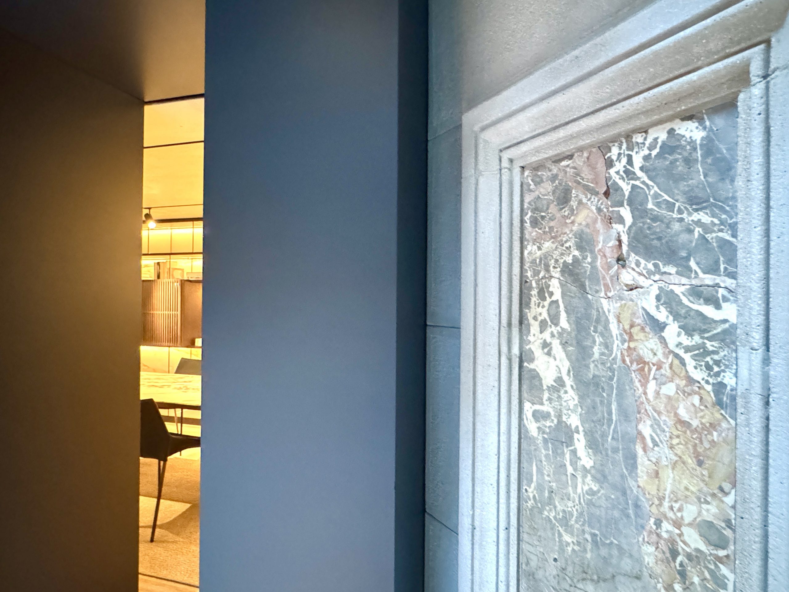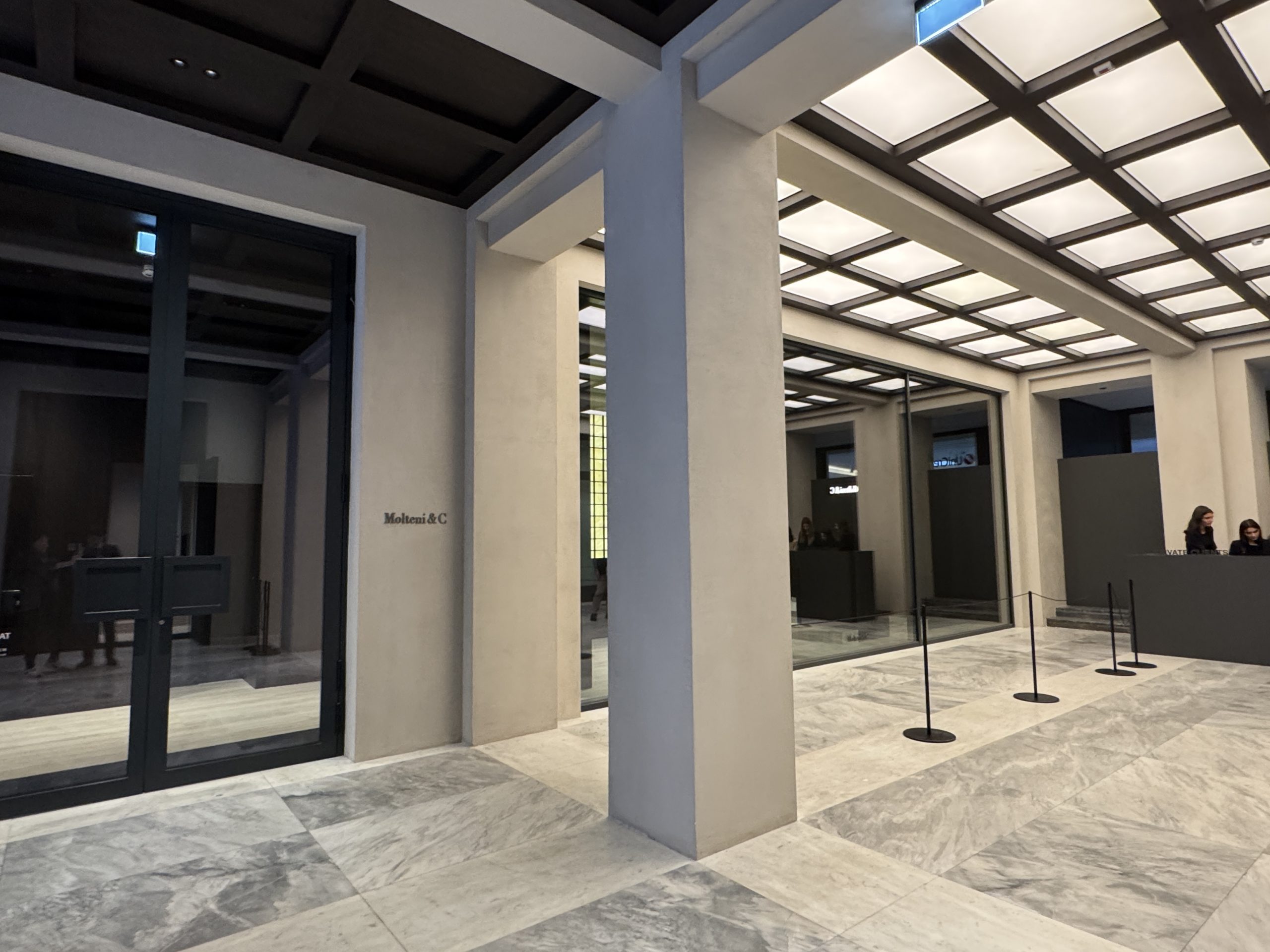 スカラ座のあるマンツォーニ通りの建物をヴィンセント・ヴァン・ドゥイセンがモルテーニの世界観でリノベーションしている。MDW期間中は完全予約制、一般入場不可のところを、いち早くご案内いただく。