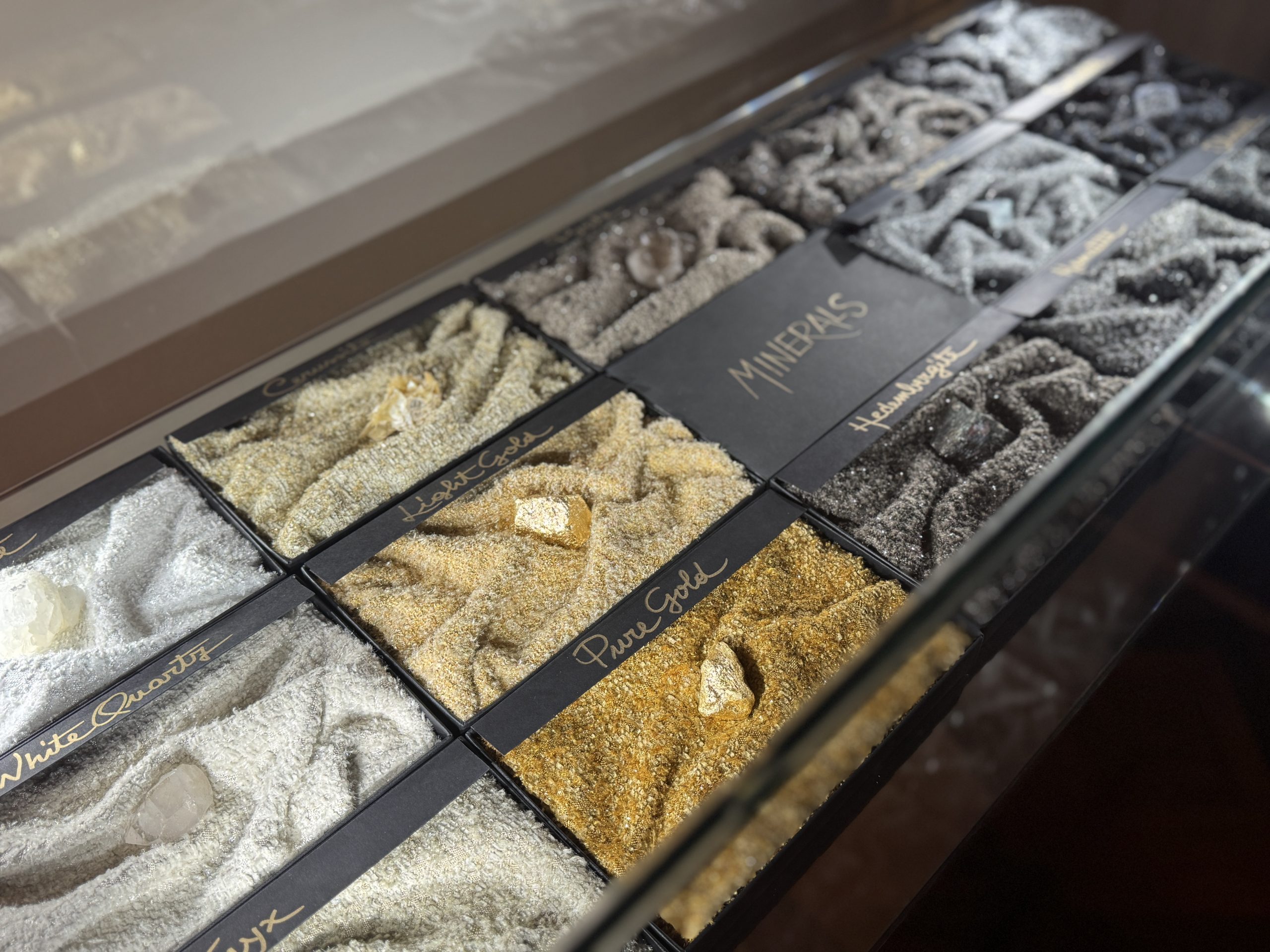 小さなサンプルボックスはまるで宝石箱のよう。輝きは空間の中では落ち着いた光となる。