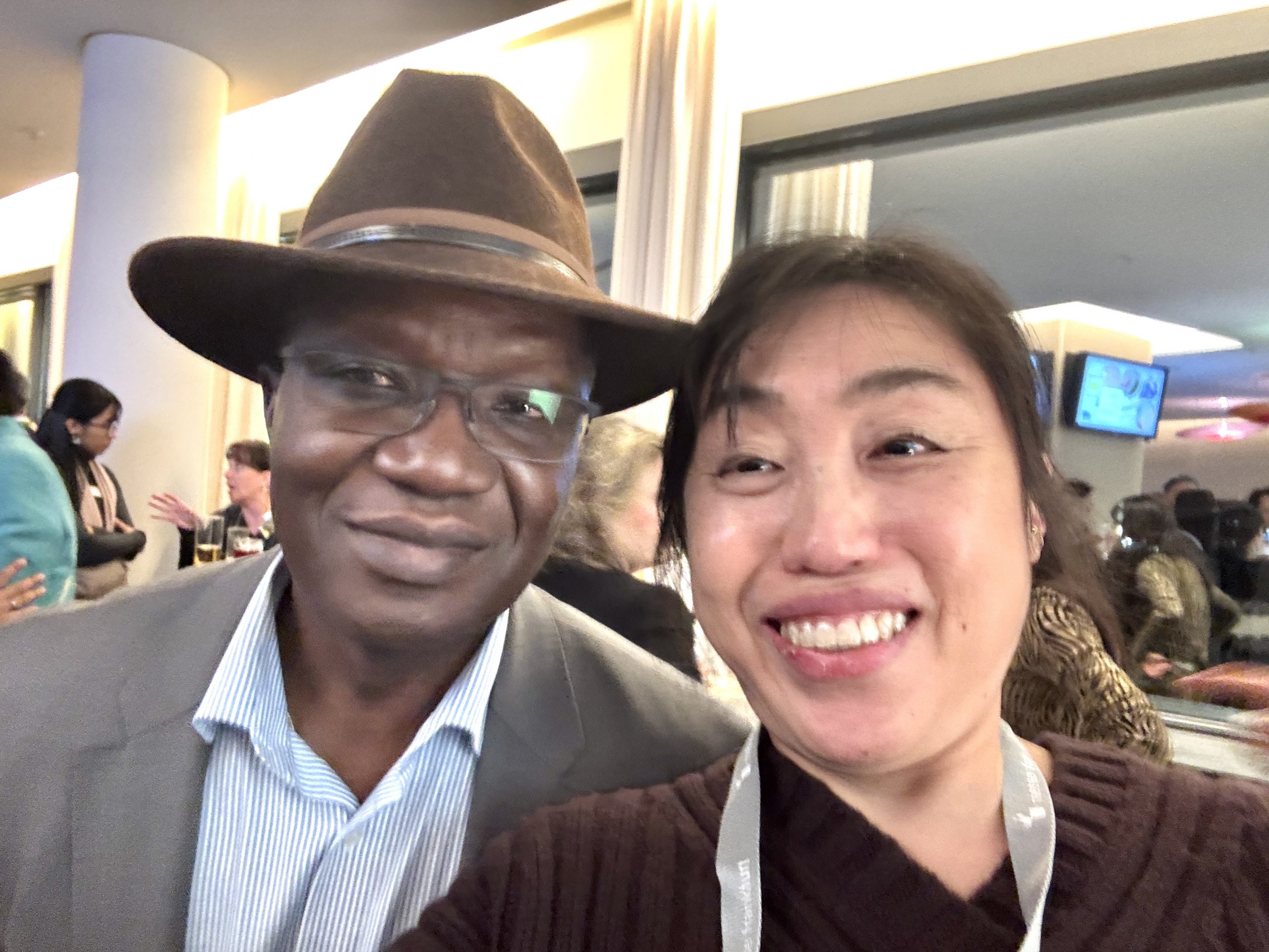 誰とも会話のきっかけがない。そんな場は何度体験しても、いつも緊張して逃げ出したくなる。が、場の温度に馴染んでくると何となく会話が始まって、、、。(私の顔のアップでお目汚し失礼ですが)、これまで出会う機会もなかった西アフリカのダンディなビジネスマンと会話が始まる。